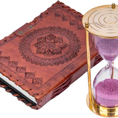 Vintage Wooden Hourglass with Green Sand – Antique Sand Timer, Unique Home & Office Decor, Elegant Desk Display, Timeless Sandglass for Classic Charm (Pink)