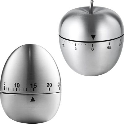 2Pcs Kitchen Timer, Egg Fruit Shape Stainless Steel Waterproof Mechanical Kitchen Timer Visual Countdow Cooking Timer, 70 Decibels Alarm