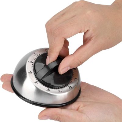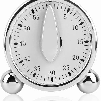 60 Minutes Stainless Steel Kitchen Timer Mechanical Wind up Reminder Visual Mechanical Timer for Kitchen Classroom